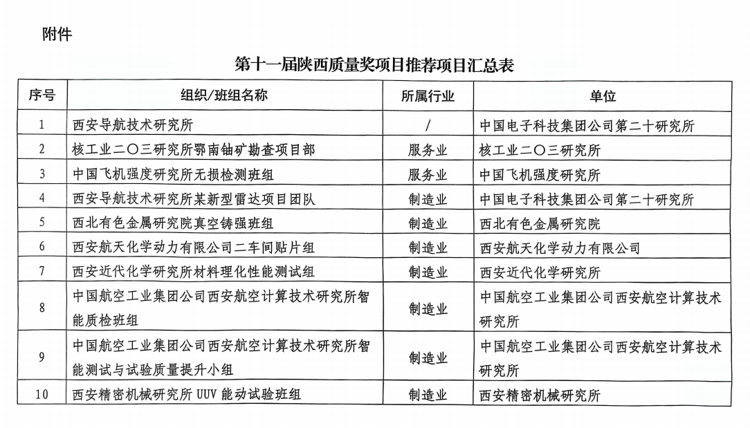1.2025年度拟通过我办提名申报第十一届陕西质量奖项目共计10项。